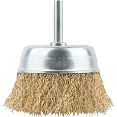 Корщетка чашечная 65мм, со шпилькой, стальная латунир.волнистая проволока