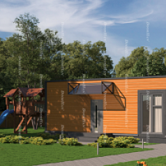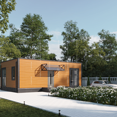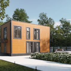 Домокомплект EFFECT WIDE WINDOWS имеет дополнительную особенность: много окон, широкий обзор во всех направлениях. Этот комплект предлагают покупателям, которые хотят любоваться ландшафтом и заботятся о хорошем естественном освещении помещения. Окна имеют стандартный размер, но в комплекте стеновых панелей преобладают панели с пластиковыми окнами.